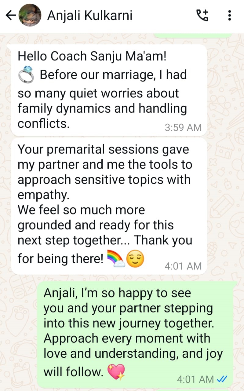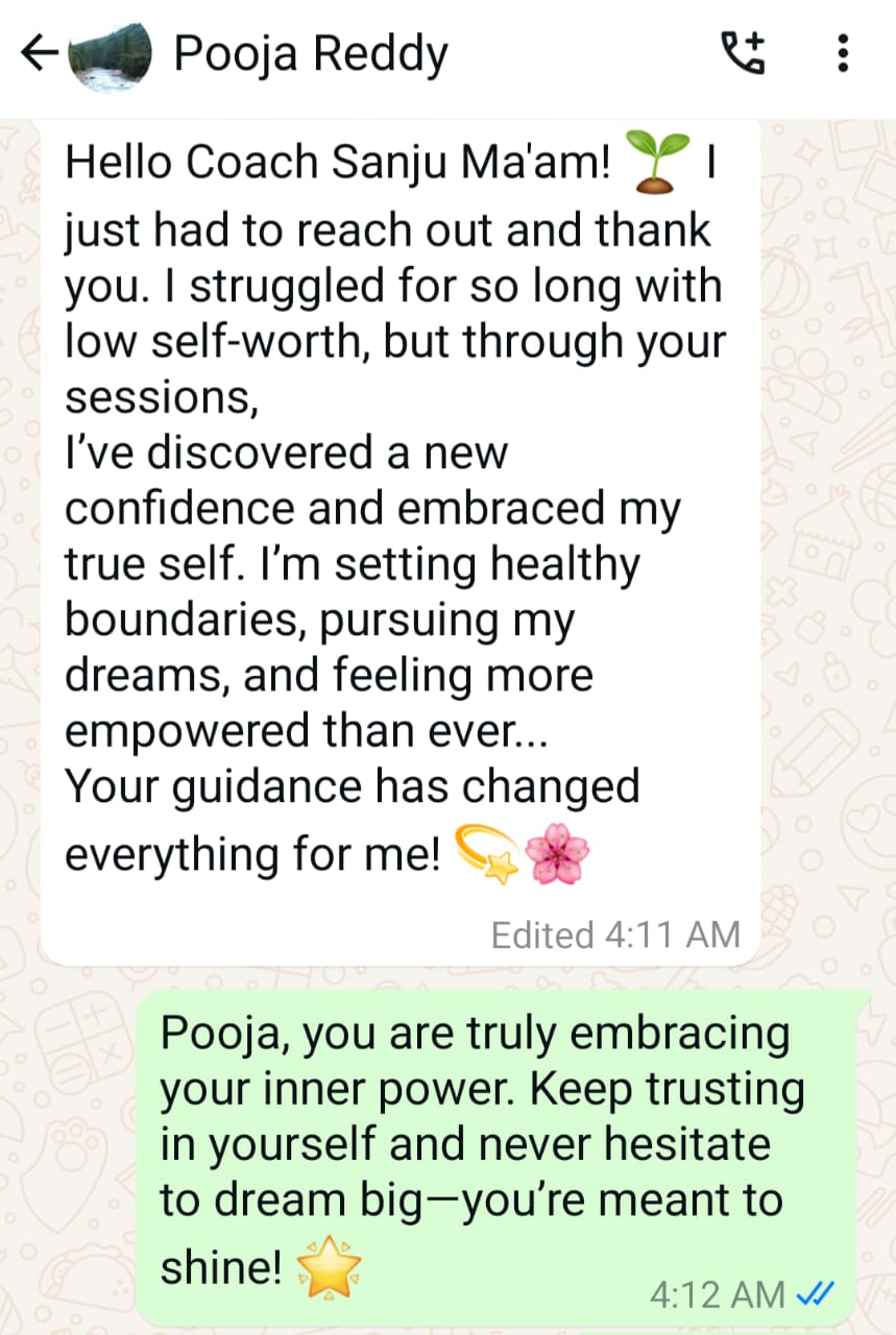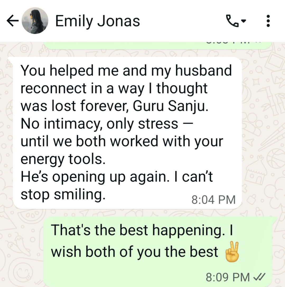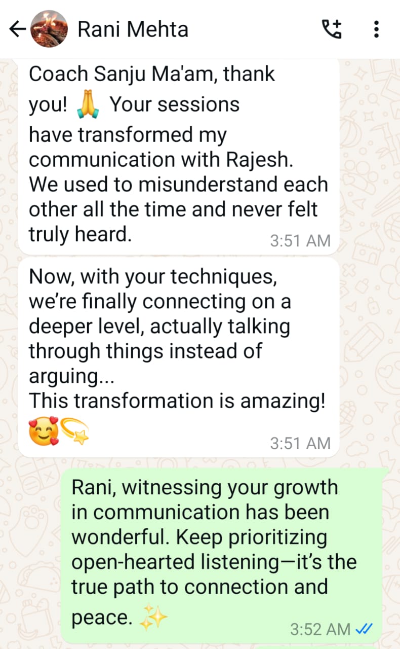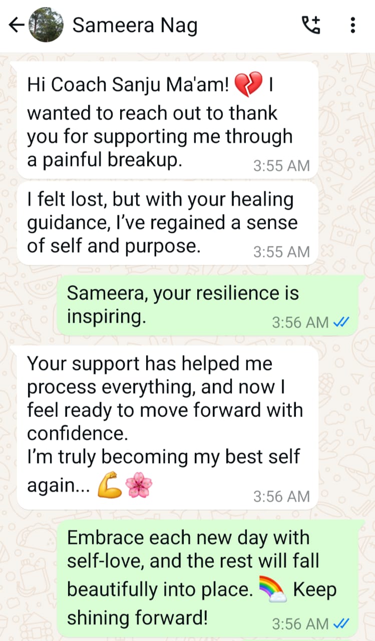 Guru Sanju’s coaching was the turning point of my life. She helped me escape the loop I didn’t know I was stuck in. Today, I wake up excited, grounded, and free. Her clarity, precision, and depth are unmatched. I owe my freedom to her guidance.