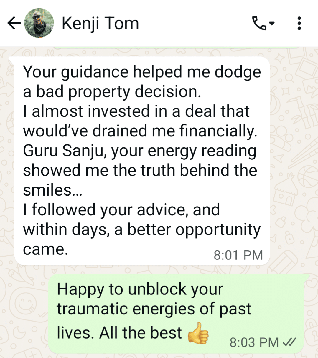 I was overwhelmed with doubt before making a big property investment. Guru Sanju’s clairvoyant reading gave me precise clarity on whether the decision aligned with my life path. She decoded unseen influences—like land energy, timing, and personal alignment—and helped me cut through the noise. Her guidance saved me from a costly mistake and gave me full confidence in the step I took. Highly recommend her for any major life or financial decision.